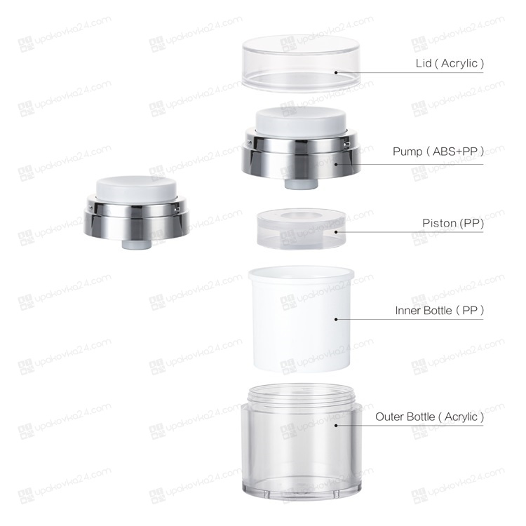 Вакуумная банка 50 мл. прозрачная с белым термосом JY124A (нижняя часть)